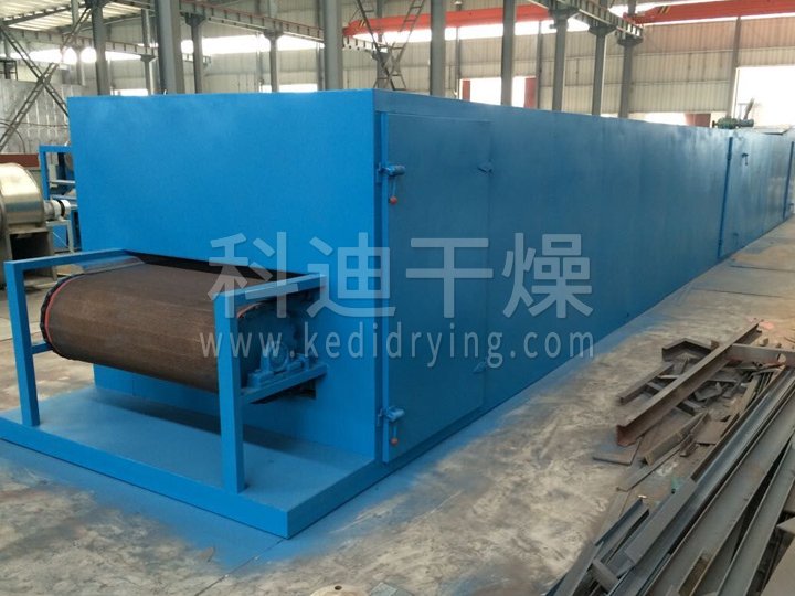 物料由加料器均勻地鋪在網(wǎng)帶上,網(wǎng)帶一般采用12-60目不銹鋼絲網(wǎng),由傳動(dòng)裝置拖動(dòng)在干燥機(jī)內(nèi)移動(dòng)。干燥機(jī)由若干單元組成,每一單元熱風(fēng)獨(dú)立循環(huán),部分尾氣由專門排濕風(fēng)機(jī)排出,廢氣由調(diào)節(jié)閥控制,熱氣由下往上或由上往下穿過鋪滿物料的網(wǎng)帶完成熱量與質(zhì)量傳遞的進(jìn)程,帶走物料水份。網(wǎng)帶緩慢移動(dòng),運(yùn)行速度可根據(jù)物料溫度自由調(diào)節(jié),干燥后的成品連續(xù)落入收料器中。上下循環(huán)單元根據(jù)用戶需要可靈活配備,單元數(shù)量亦可根據(jù)需要選取。