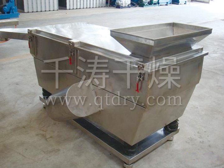 該機是由進出料口篩網(wǎng)篩箱、振動源及減震器三大部件構成。機座與篩箱連接有4-6組軟橡膠減震器上下固定,開機即產(chǎn)生離心力,振幅有偏心塊、減震器對應控制,從而達到需要的工作性能,使物料有一個拋震和松動的過篩過程。廣泛適用于制藥、食品、化工、冶金、電子等行業(yè)篩選的理想設備。